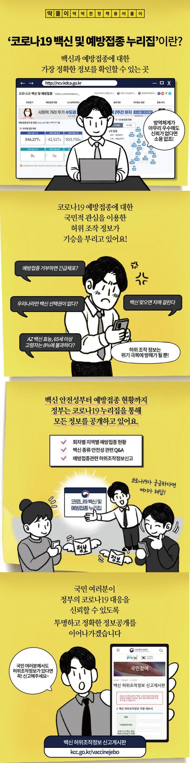 딱풀이 코로나19 백신 및 예방접종 누리집 이란 카드 한컷 뉴스 대한민국 정책브리핑